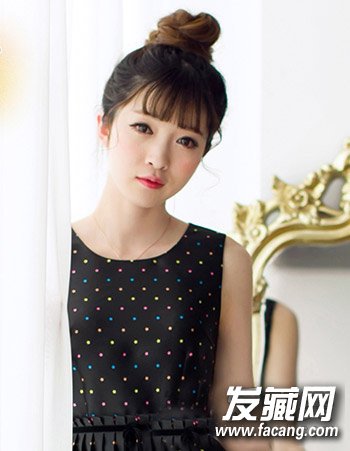 简单韩式蓬松丸子头发型