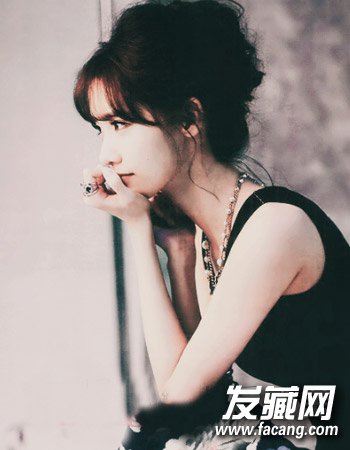 简单韩式蓬松丸子头发型
