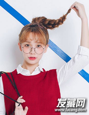 简单的利用的同样是灵动感十足的空气感刘海造型设计,再搭配精致的高马尾辫编发设计更多的是凸显韩式女生的活泼可爱风。