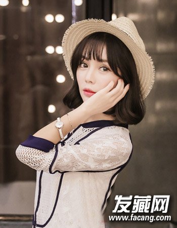 以清新自然的乌黑发色来增添女生的清纯气质风,再搭配韩式空气感刘海的造型设计与中