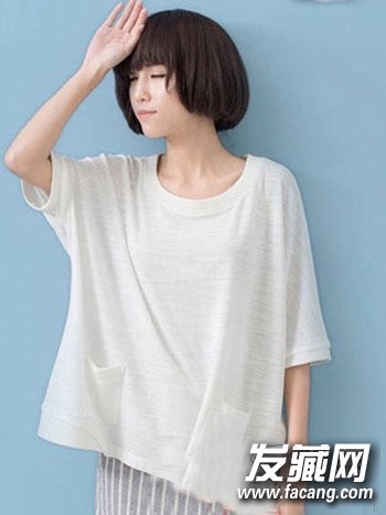 发型很适合圆脸和大脸MM们尝试,蓬松齐刘海短发打造出巴掌小脸,清新文艺范儿尽显。