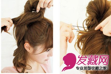 韩式花苞头扎法图解大全 高耸扭转花苞头(2)