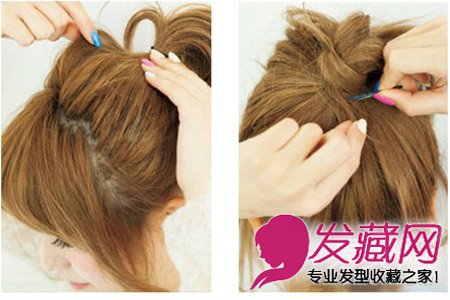 韩式花苞头扎法图解大全 高耸扭转花苞头(5)