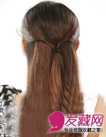 STEP 2:先从偷得一边取少量的头发如图一样进行扭转,另一边也是一样,扭转好了之后扎起来。