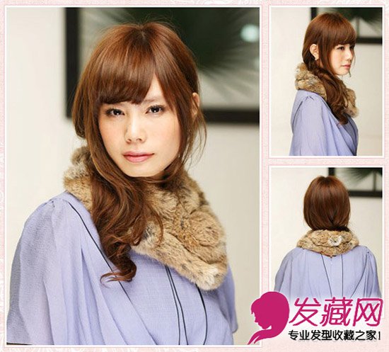 发型点评:浪漫的长卷发编织后自围巾之上垂落,迷离的眼神尽显优雅女人味。