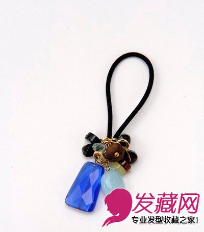 在扎发前我们需要先准备一根类似的发圈,上面带着bling bling的水晶珠子,可爱俏皮哦。