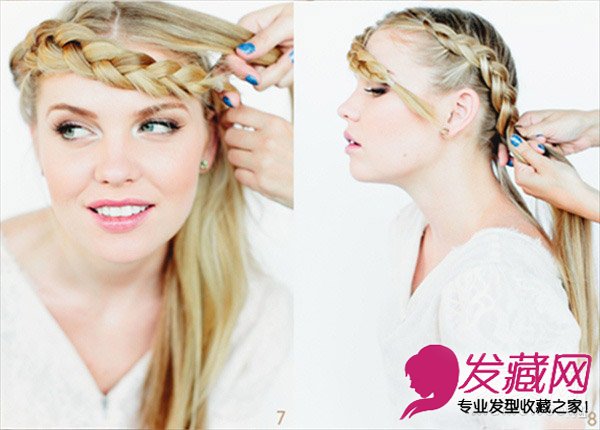 STEP4 接着到左侧的头发,用同样的方法沿着耳侧编麻花辫,不断并入头发。