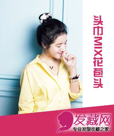 style3:将头巾与长发混合在一起绑成花苞头发型,为你清纯的黑发增添一抹华丽色彩。