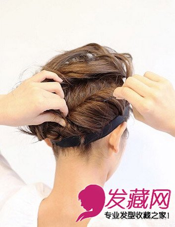 step2:脑后的头发缠绕成发辫后用发夹固定。