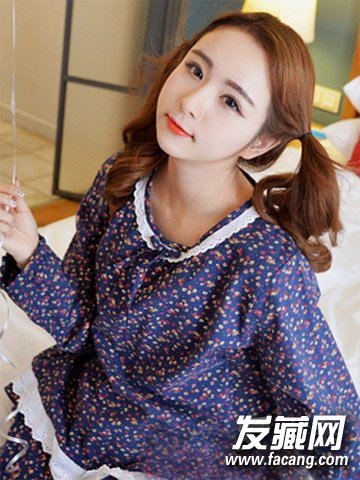 可爱的双马尾是校园MM的最爱,蓬松的烫卷发扎低双