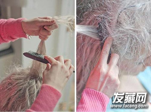第七步:从头顶开始倒梳头发,将头发打毛。