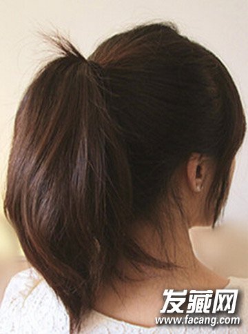 step2、将绑好的高马尾分成上下两束头发,上面的头发稍微多一点,下面的头发少一点,然后再用手指倒梳上面的头发,以打造出蓬松效果;