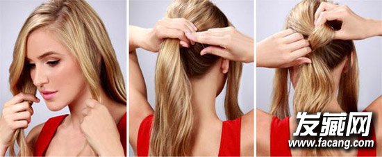 step 1:将你的前面一半的部分头发分成两部分,用于扎辫子。