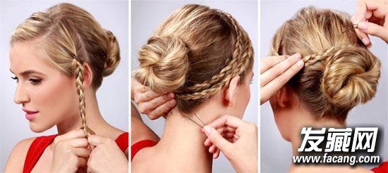 step 8:将辫子和丸子头扎在一起,然后用发卡固定。