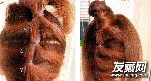 step 3:依次向上将下半部分的发丝扎成竹节状的马尾发型呈现出图片上的效果。