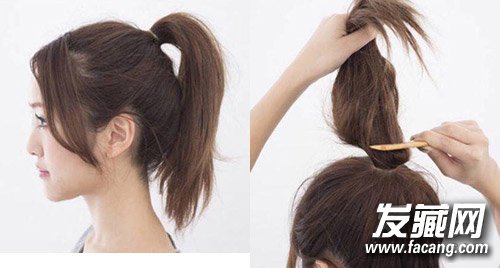 step 2:将束起的高位马尾拉起发尾,用密齿梳倒梳刮蓬松。