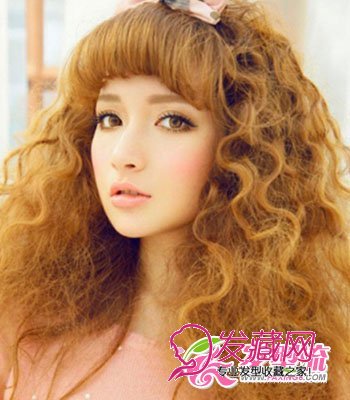 可爱卷发造型 稍显夸张的卷发造型制造出爆炸式卷度,这对女生的脸型来说是个不小的考验哦!刘海修剪出不规则感,再制造出略拱的弧度,显现出清澈的明眸。如螺旋卷的弧度卷发蓬松感十足,与细软的秀发相映衬,娇媚风情因此而绽放!