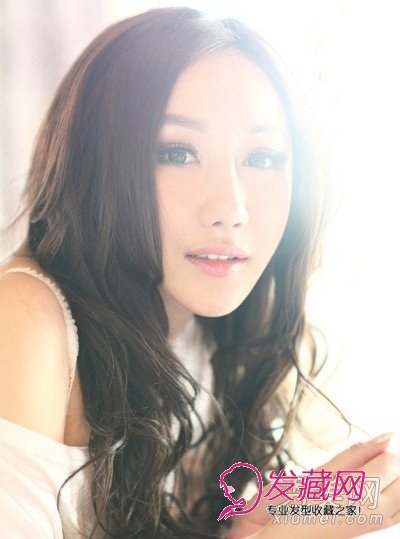 中分的卷发,修饰出玲珑的小脸型,清新自然的妆容和白色裙子将会给造型加分。