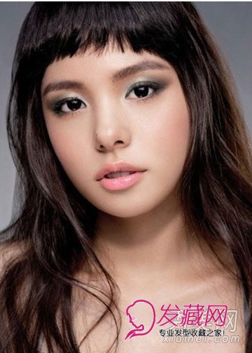 超短刘海的造型并不是每个人都敢尝试的。这种眉毛以上3-4cm的短刘海如果运用得好,有很棒的减龄效果,搭配大波浪
