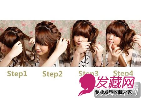 STEP1:留出前刘海 。从头顶中部将发丝分成三股..然后向左边开始编马尾。