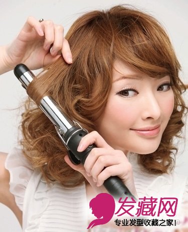 3、表层的头发不用卷到发根上方的头发卷到发丝的1/3处,这样A字轮廓才更突出。卷完全部头发后,用手指把发卷拉开。
