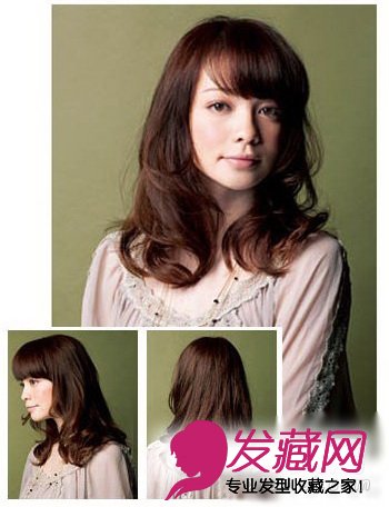 这款发型很适合方脸MM,圆弧的空气感薄刘海,修饰脸型的同时能给人一种柔美感。两侧的头发做内弧度,遮挡住部分脸颊,让方脸看起来变成了瓜子脸,更柔美,更温和。