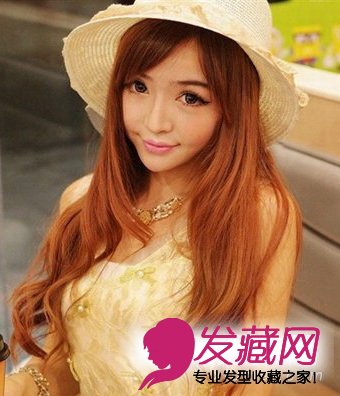 长长的长卷发染成耀眼的棕色染发有点轻熟女的韵味,3/4斜刘海的发型设计,一来可以起到修饰脸型的效果,二来可以增添不少时尚感,搭配一顶宽边的太阳帽,出游就搞定啦!