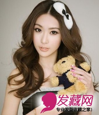 中分大波浪卷发发型一直受到潮女们的青睐,浪漫柔美的卷发弧度散发都市女性的性感魅力,巧克力染发色和蝴蝶结发饰展现女生优雅甜美的气质。