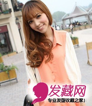 这款金棕色的长发发型发尾部分看起来蓬松蓬松的感觉,同时也散发出随意的优雅气息,还更添加妩媚的女人气质,平刘海有修颜的效果,蓬松的长发发型还散发出柔美的时尚气息。