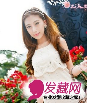 优雅女人味的长卷发发型,可以打造出小女人恬静柔美的气质,刘海用发箍固定住,小清新的淑女范淋漓尽致的展现出来了,一款微卷的长发发型低调又甜美可爱。