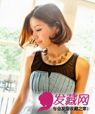 展现发型设计与脸型搭配效果的短发发型设计,刘海部分采用中分的方式,使女生的脸型更显细长而饱满。将脸颊一侧的短发夹在耳朵后面,形成“C”字型,可以很好地掩盖脸上的肉肉,衬托出一张精致小巧的脸蛋。