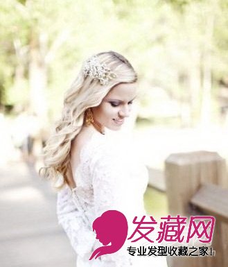 很相似,只是这一款只要拿出少量的刘海即可,在头部稍微靠上的位置固定一下,戴上装饰水钻的纱网头饰遮盖一下。