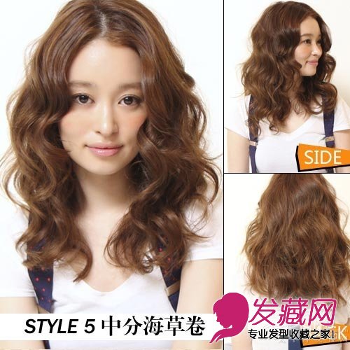 在一贯爱折腾发尾空气感的日系发型大队伍里,这款初秋发型向韩范儿靠拢,从顶发就开始模拟线条柔和的海草,一路向下卷曲,让人正像是暗怀初秋心事的邻家MM,学院气质十足呢。卷发表面是自然律动的修剪,其实卷烫更是强调发丝色调质感,质地丰润的棕色染发让发型浪漫之余更添活力感。