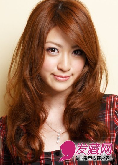 三七分的斜刘海,发际线的模糊处理,增添了几分随意感,整体的棕栗色处理,光泽感十足,大波浪的卷度,当然是女人味的必备武器啦。最重要的,还是有层次的修剪,是整体造型显得较为轻盈。