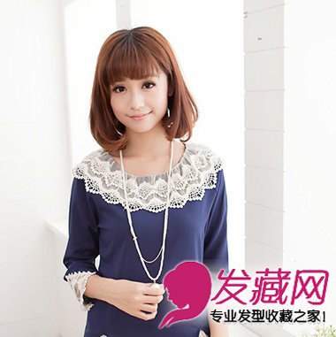 精致的内扣短卷发,弧度内扣修饰出脸型,森女系装束清新可人
