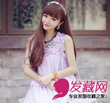 仙气十足的粉紫色蕾丝雪纺长裙,红棕色齐刘海长发减龄萌系