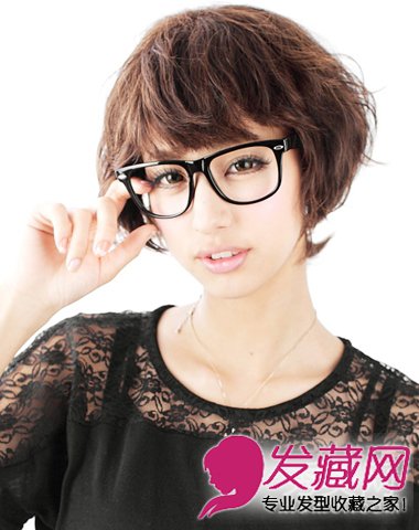 ,修剪的层次不齐夏日里更添清凉度,棕色系微烫设计,配上一副大黑框眼睛,文艺沉静。