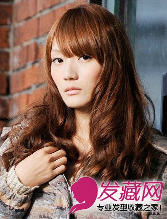 今年流行什么发型 齐刘海棕色长卷发发型(3)