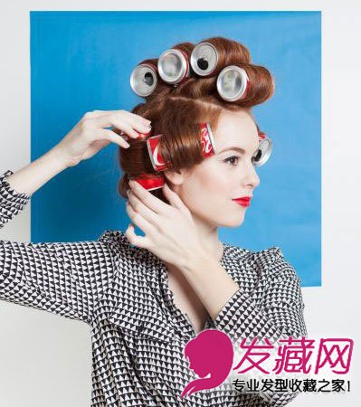 5.把正面中间的头发卷成四个发卷,两侧的头发卷成2~3个发卷。