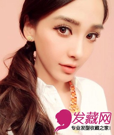 很慵懒的一款卷发扎发,蓬松感十足最显脸小,搭配韩式的斜刘海造型,打造出精致的小颜脸。