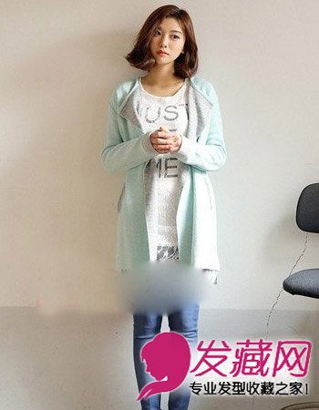 棕色的斜分短卷发,俏丽清纯,搭配浅色的长款针织外套,清爽宜人,春天气息浓厚。