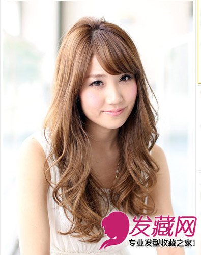 发型点评:棕色卷发光泽温暖甜美,斜刘海一路内扣,沿着眉毛烫出整齐的线条感 。卷发披肩最是迷人。