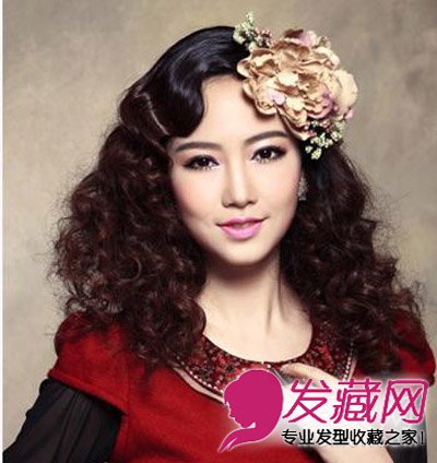 发型八,细密的蛋卷发型,这是一款有些许复古韵味的卷发,这种细腻而丰富的蛋卷和刘海处一个优美弧度的卷曲本就给人一种英伦之风,再加上一朵极大的花朵别于发侧,更显出了贵族淑女的可爱气质。