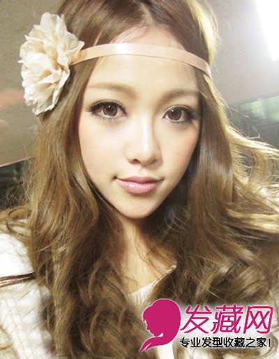 蓬松蛋卷头,中分的刘海,额前装饰的可爱头箍不仅彰显了一个浓郁的异族风情,还起到了很好的修颜效果。