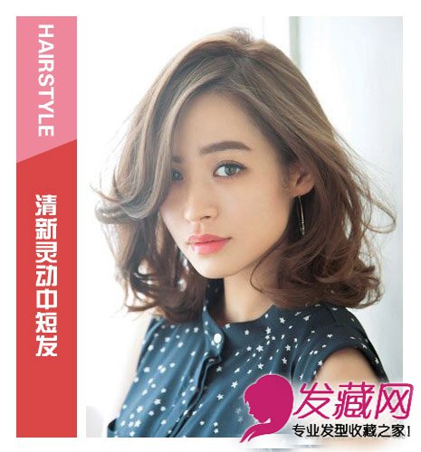 发型点评:大片的斜刘海烫出卷翘的弧度,在前额勾勒出华丽的弧度,蓬松的中短发甜美浪漫,清新不失典雅。