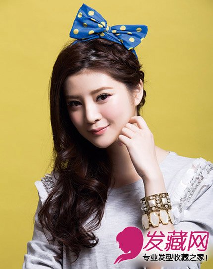 自然随意的摆动在肩头,散发出无尽的甜美气息。搭配一只蓝色波点蝴蝶结发饰,活力十足。