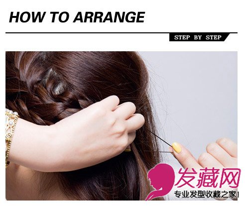 step4:沿着辫子再编出一条辫子,也用发夹别在脑后。