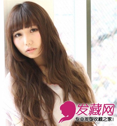 韩版斜刘海中长卷发 大波浪卷发