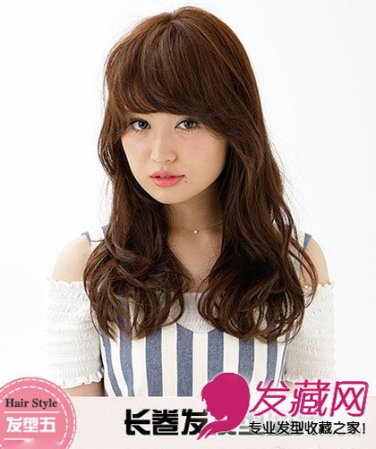 发型点评:长脸MM秋冬季节可以试试这款长卷发设计。长长的刘海遮盖住眉毛,轻盈的烫发弧度俏丽动人。