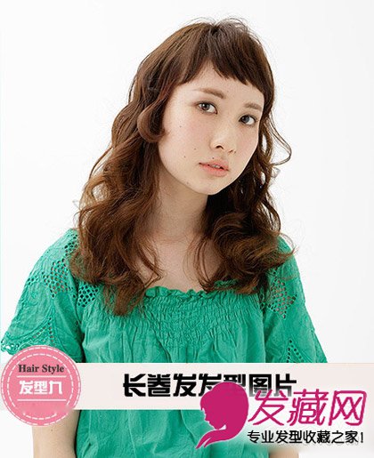 发型点评:想要用长卷发打造出俏皮感?就来试试这款长卷发吧。露出眉毛的刘海清新简单,卷翘的刘海可爱十足。